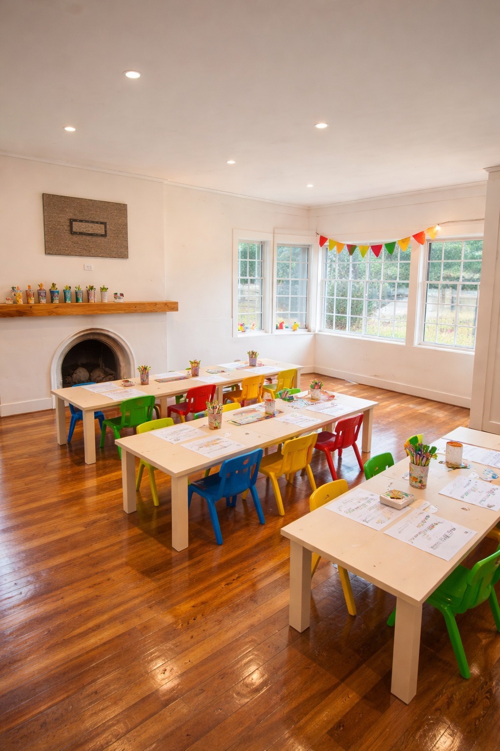 Ofrecemos un atelier de arte con materiales a disposición para que los niños puedan dejar volar su creatividad.